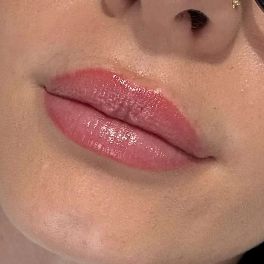 In this style, we use one colour all over the lips. This gives the effect of a lipstick. If you’re just wanting a soft, natural result we can space out the shading to make it less saturated, and so will heal to look like a lip tint.